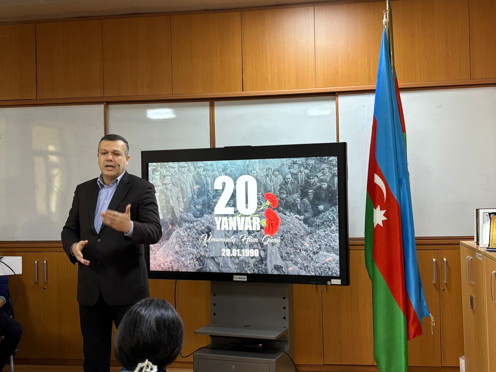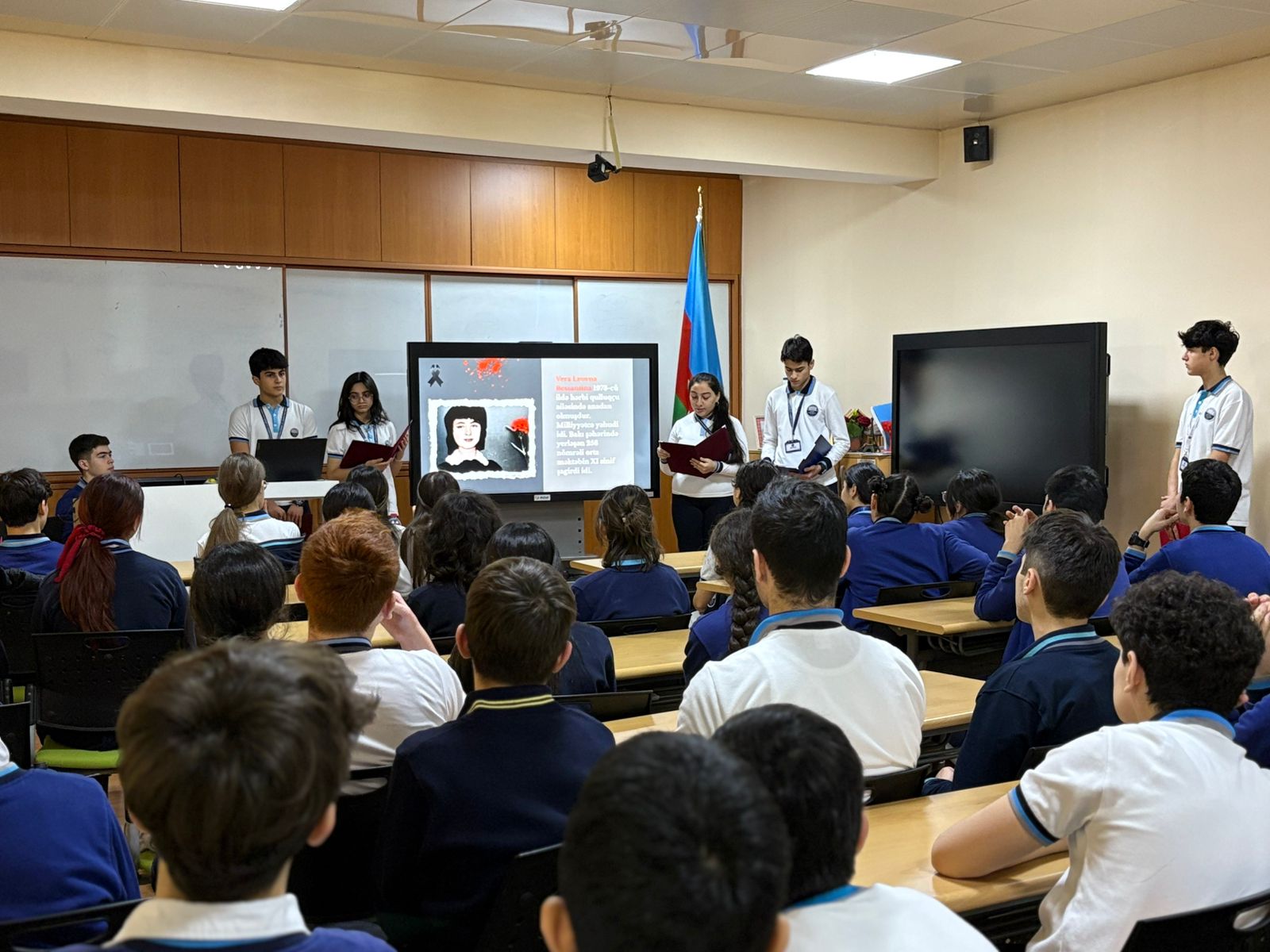 20 Yanvar hadisələri zamanı şəhid olmuş məktəblilər haqqında şagirdlərin hazırladıqları təqdimat nümayiş etdirilib. Liseyin tarix müəllimi S. Səmədov çıxış edərək həmin dövrün ictimai-siyasi hadisələrinə dair maraqlı məlumatları şagirdlərlə bolüşüb.