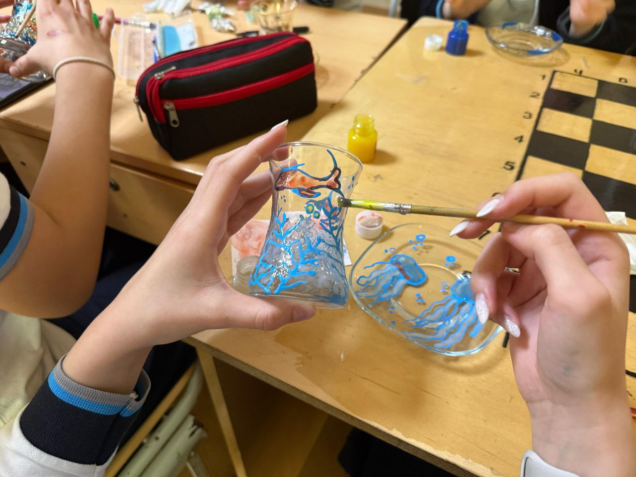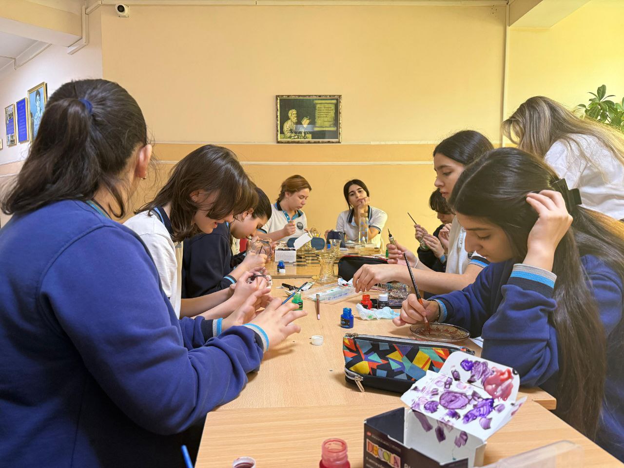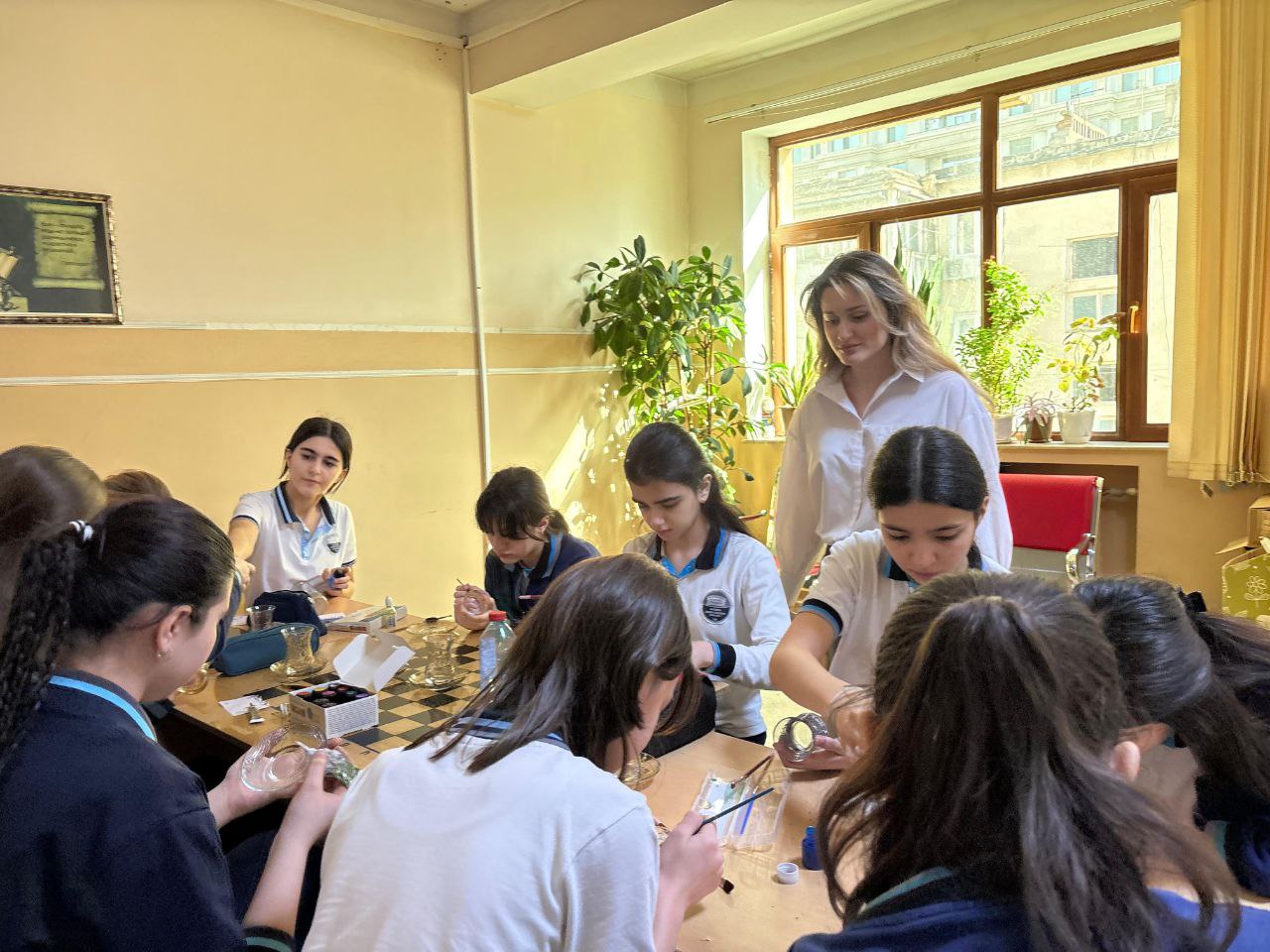 Liseyin 8 və 9-cu sinif şagirdlərinin iştirakı ilə təşkil olunmuş masterclassda şagirdlərimiz müxtəlif milli ornamentlərdən və naxışlardan istifadə edərək stəkanları bəzəyiblər.