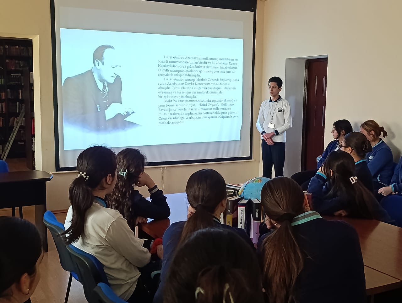 Liseyimizdə “Tanınmış şəxsiyyətlər” çərçivəsində tədbirlər davam edir. Bu gün görkəmli Azərbaycan bəstəkarı, Xalq artisti Fikrət Əmirovun həyat və yaradıcılığına həsr olunmuş maarifləndirici tədbir keçirildi.