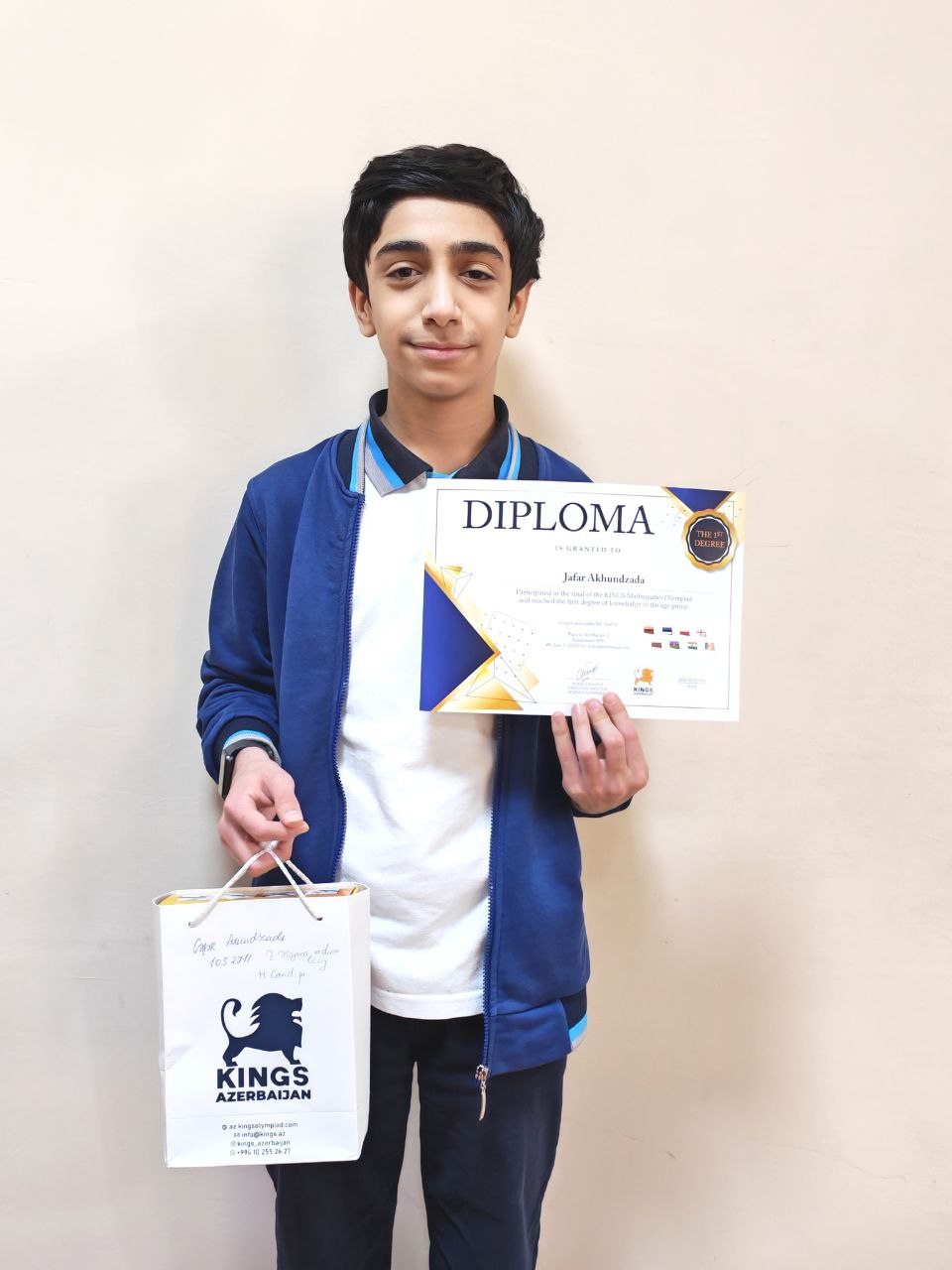Akademik Zərifə Əliyeva adına liseyin 9A1 sinif şagirdi Axundzadə Cəfər "Kings" olimpiadasında qazandığı uğurlu nəticəyə görə diploma və hədiyyəyə layiq görülüb.